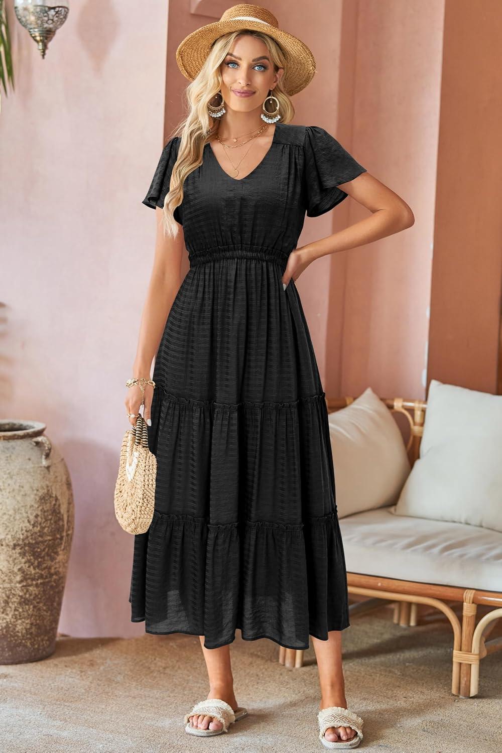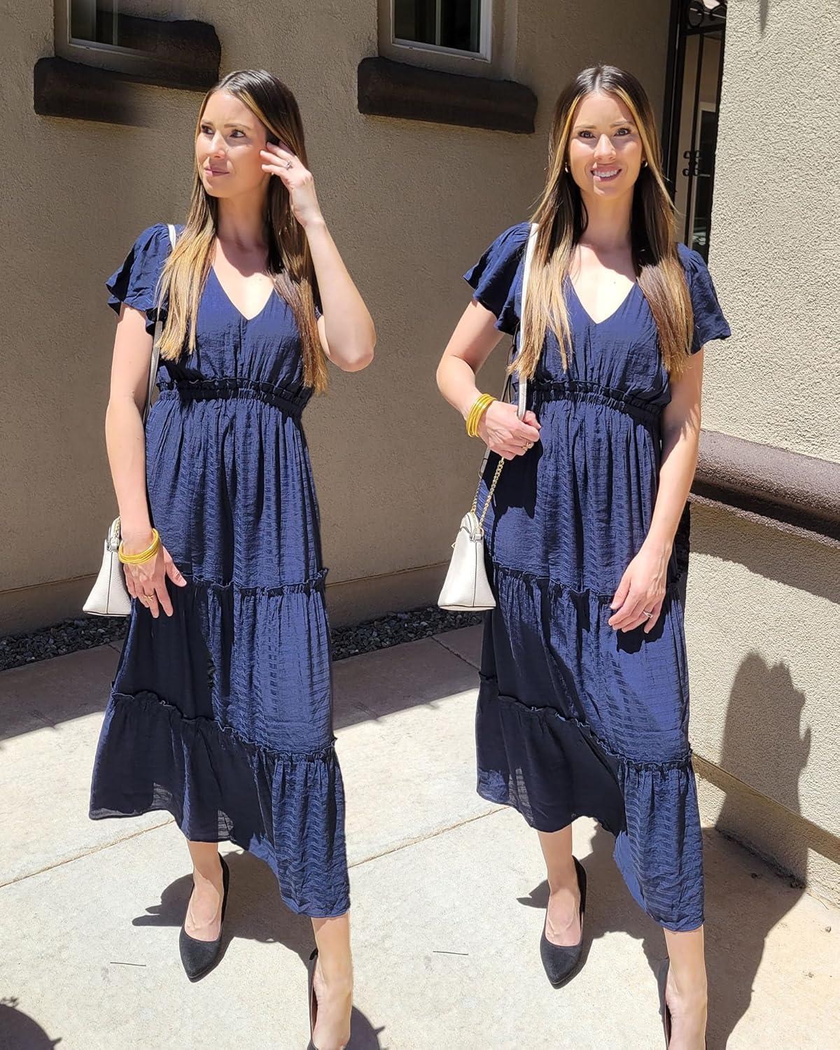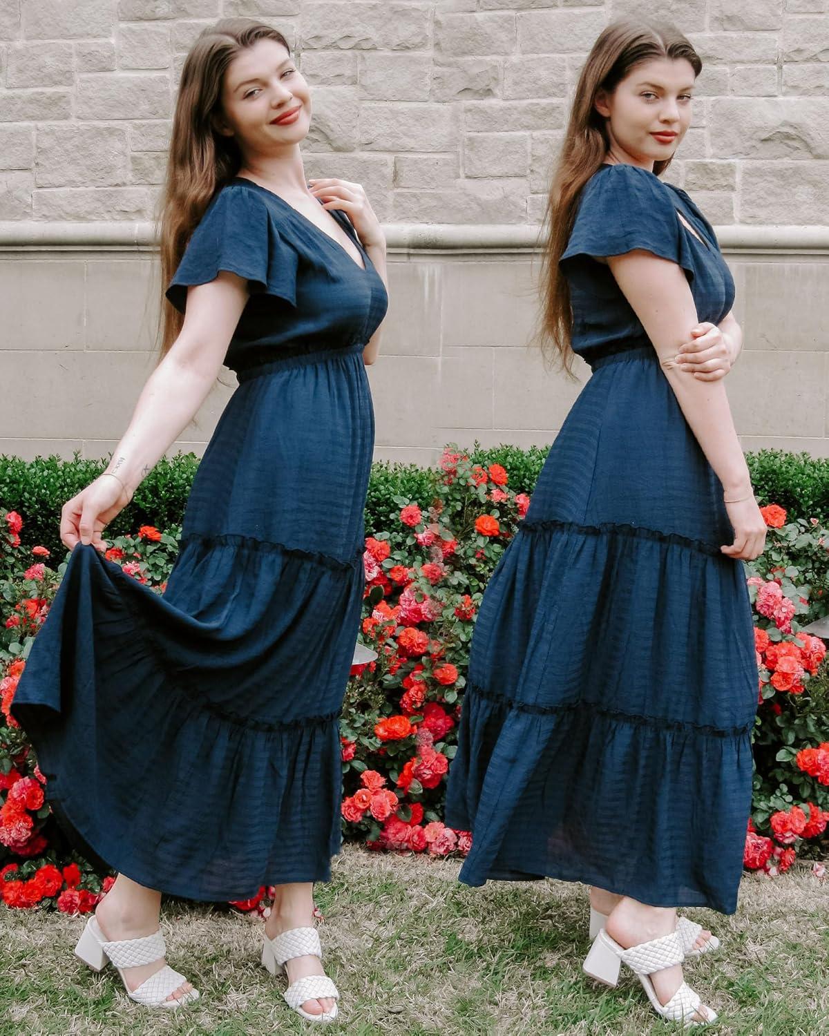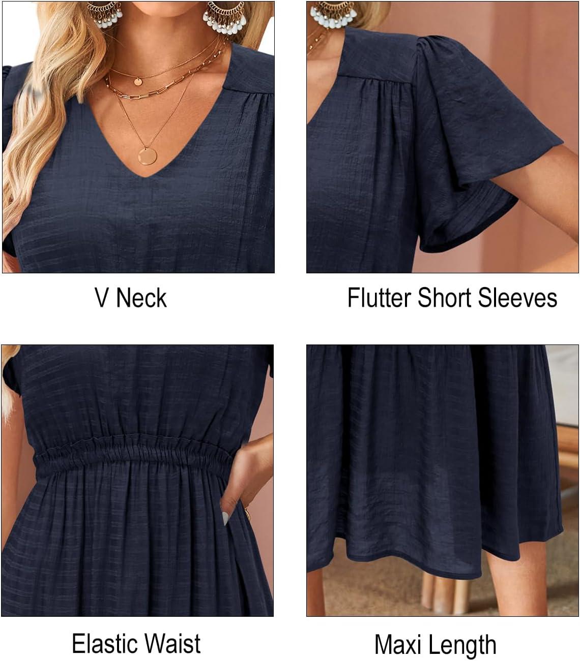 Be the first to review “VOTEPRETTY Women’s 2024 Fashion Summer Maxi Dresses Boho Beach V Neck Flutter Short Sleeve Tiered Long Dress(Navy)” Cancel reply