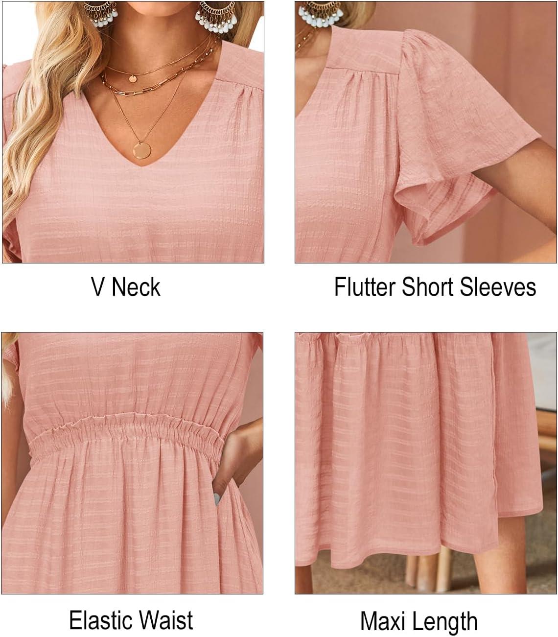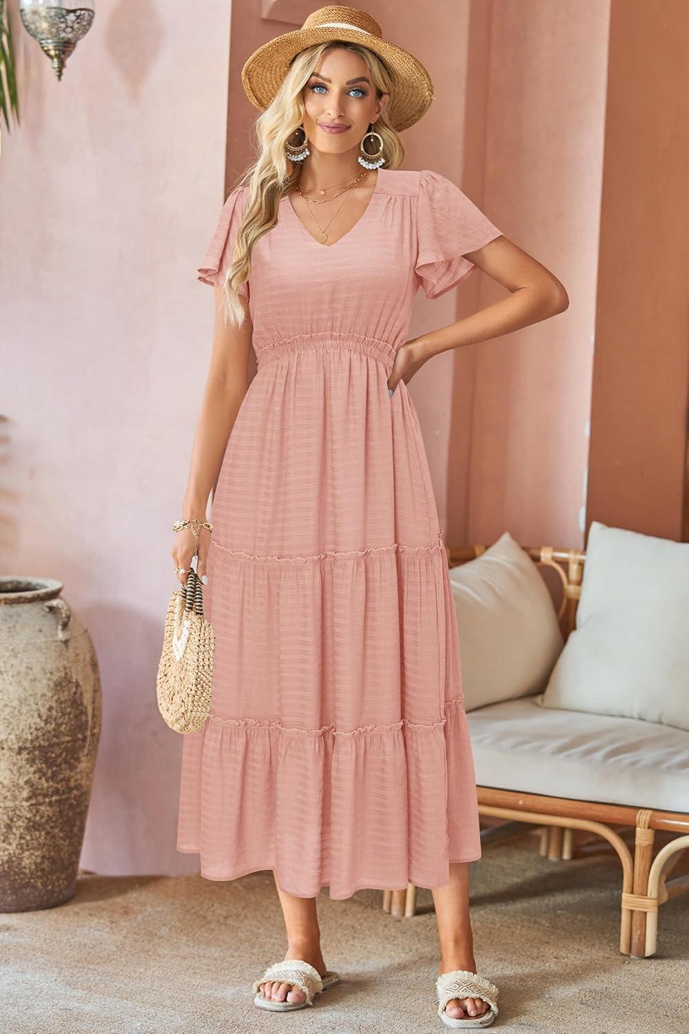 Score big savings on VOTEPRETTY Women’s 2024 Fashion Summer Maxi Dresses Boho Beach V Neck Flutter Short Sleeve Tiered Long Dress(Pink) during our back-to-school sale. Limited quantities available.