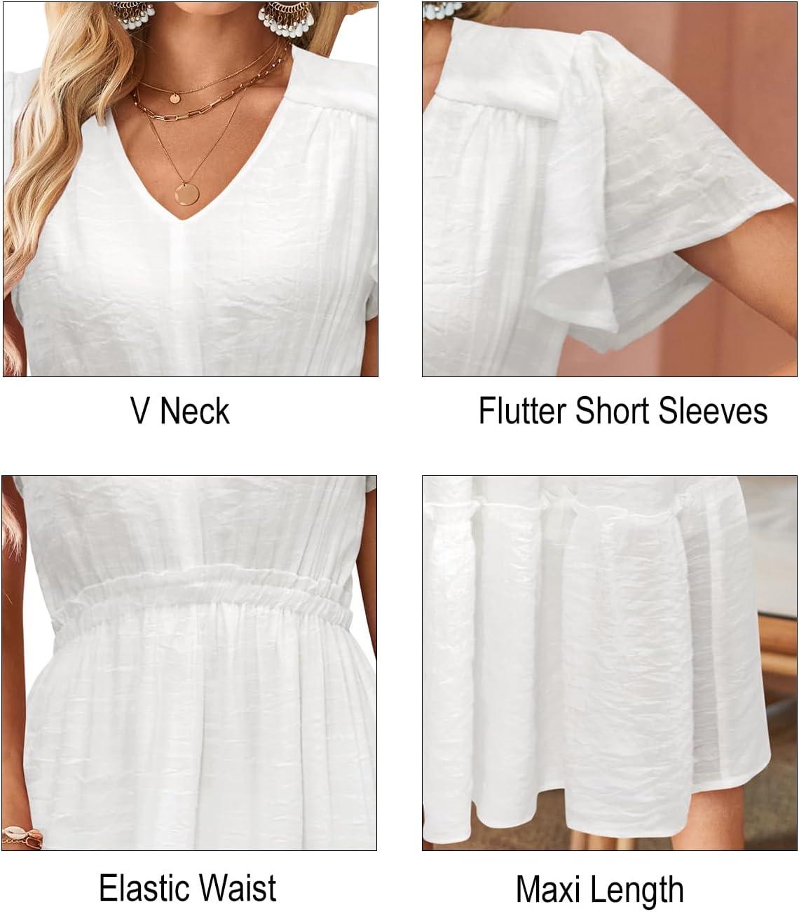 Get a free gift with your purchase of VOTEPRETTY Women’s 2024 Fashion Summer Maxi Dresses Boho Beach V Neck Flutter Short Sleeve Tiered Long Dress(White). Limited quantities available!