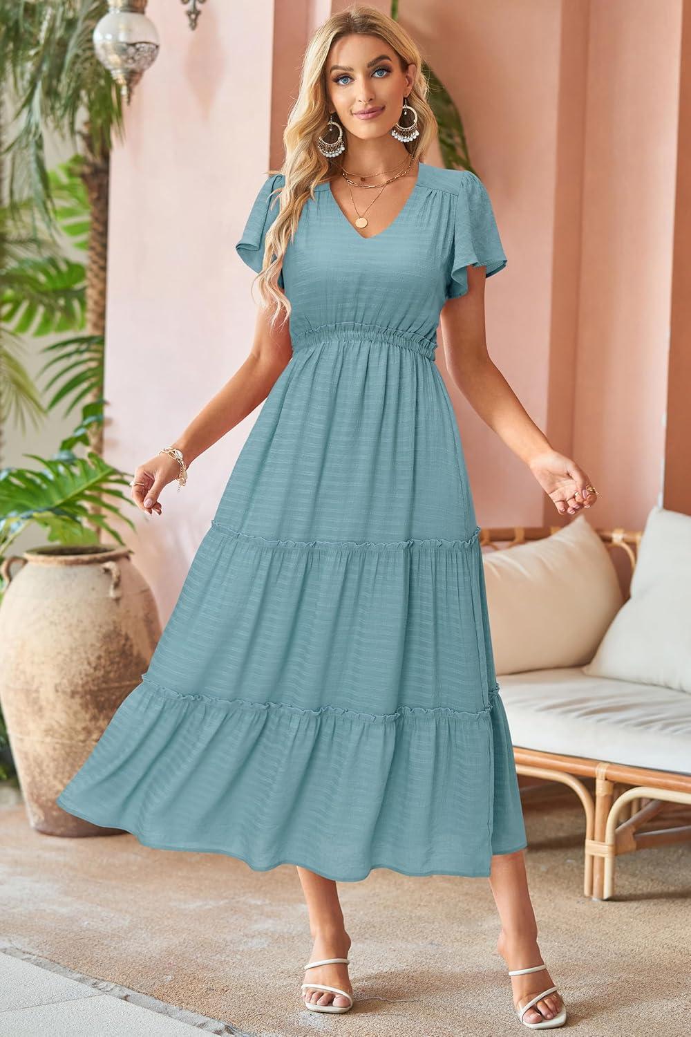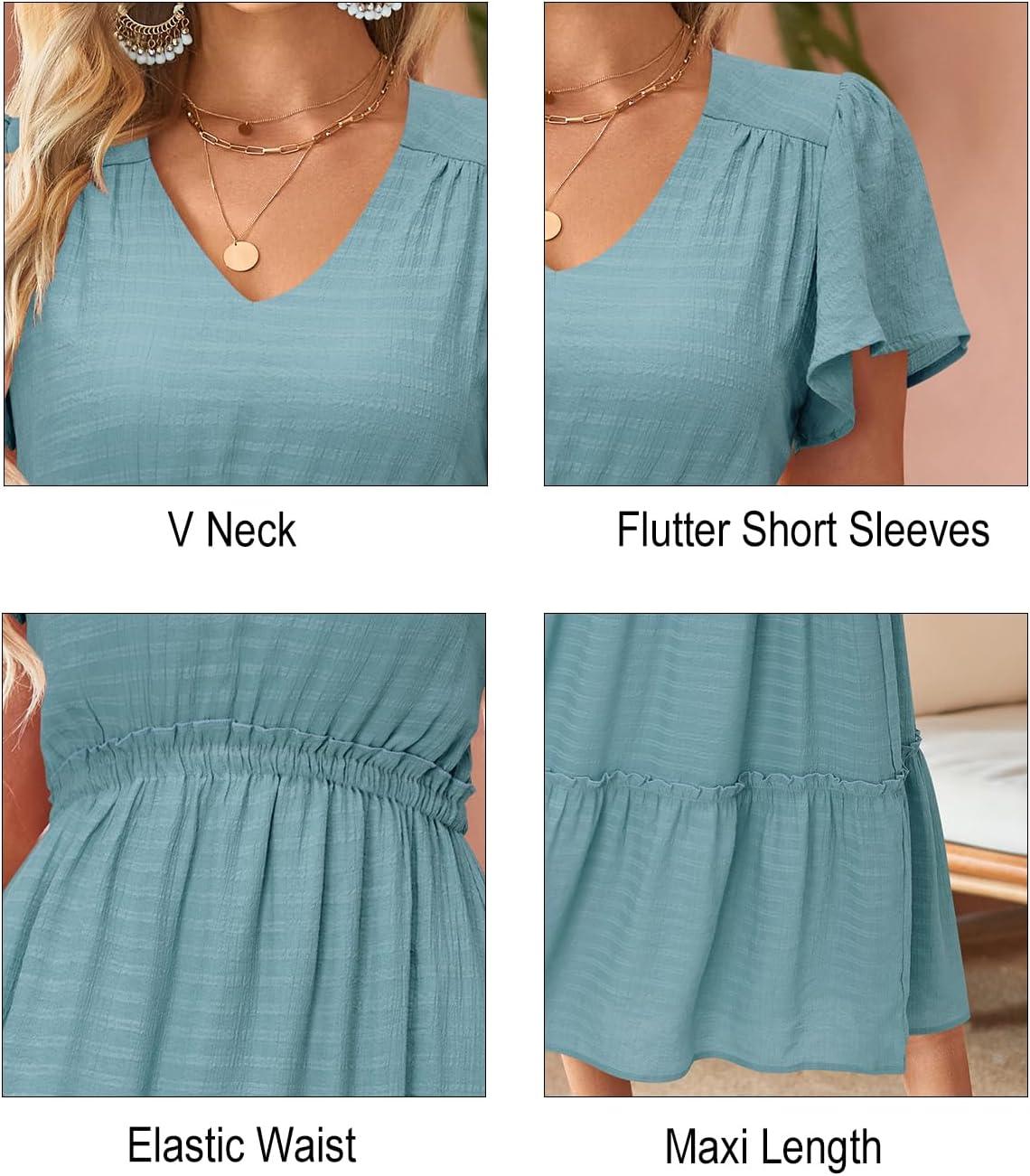 Don’t miss out on our limited-time offer: get a free {accessory} with your purchase of VOTEPRETTY Women’s 2025 Summer Boho Maxi Dresses Flutter Short Sleeve V Neck Casual Beach Wedding Guest Vacation Long Dress(Blue Green).