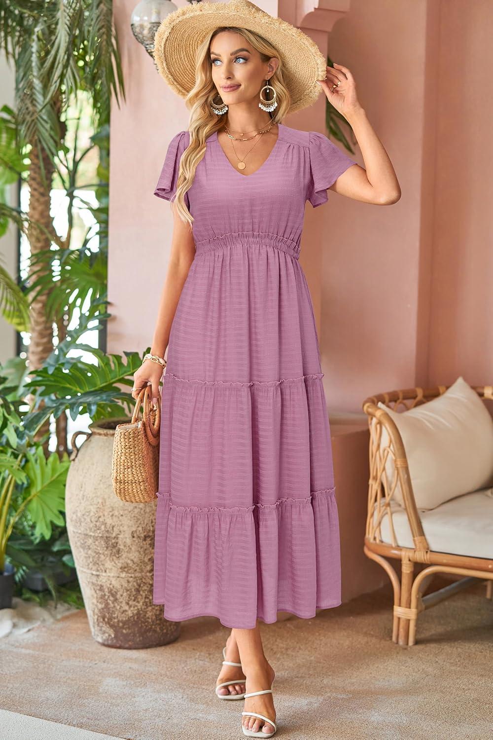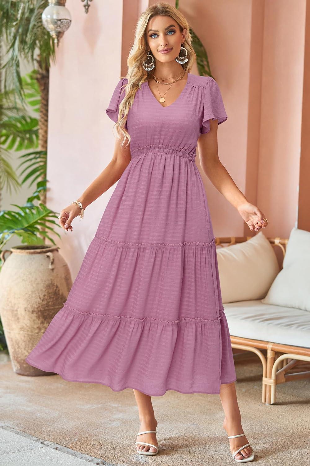 Get up to 60% off on VOTEPRETTY Women’s 2025 Summer Boho Maxi Dresses Flutter Short Sleeve V Neck Casual Beach Wedding Guest Vacation Long Dress(Rose Pink) styles during our winter sale event.
