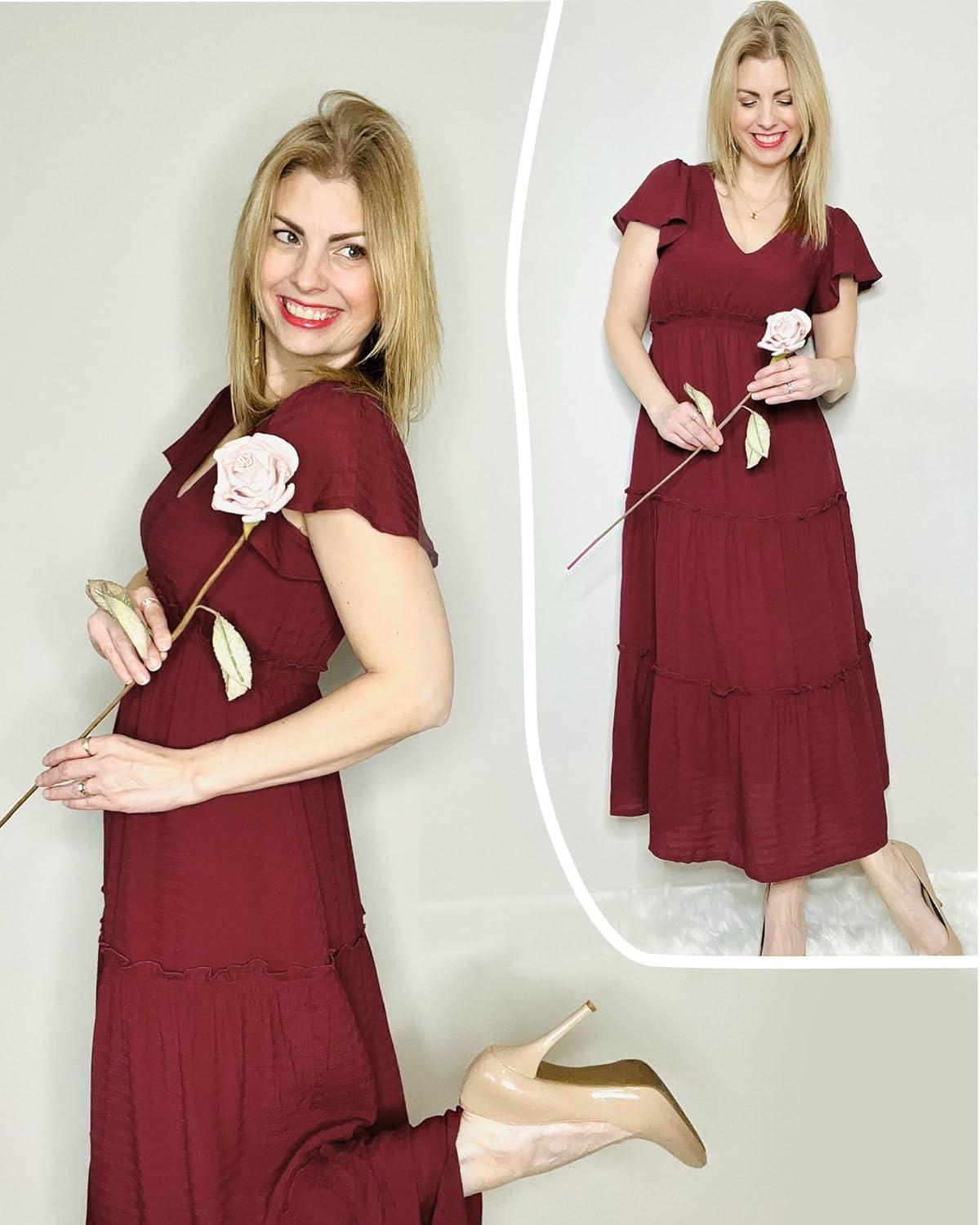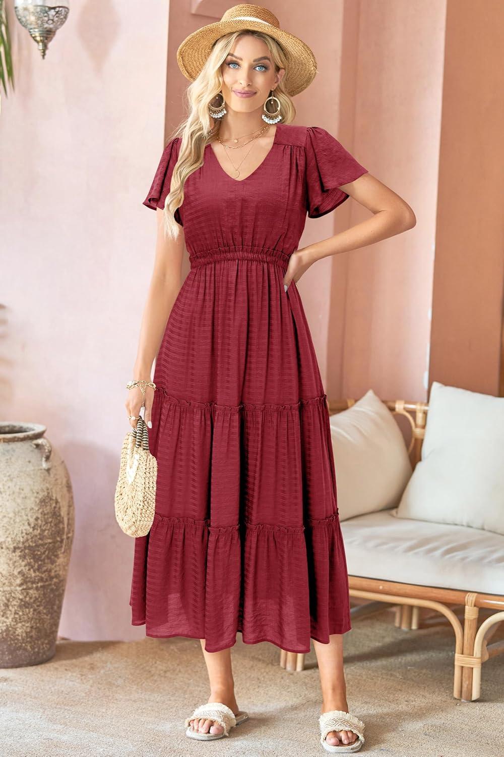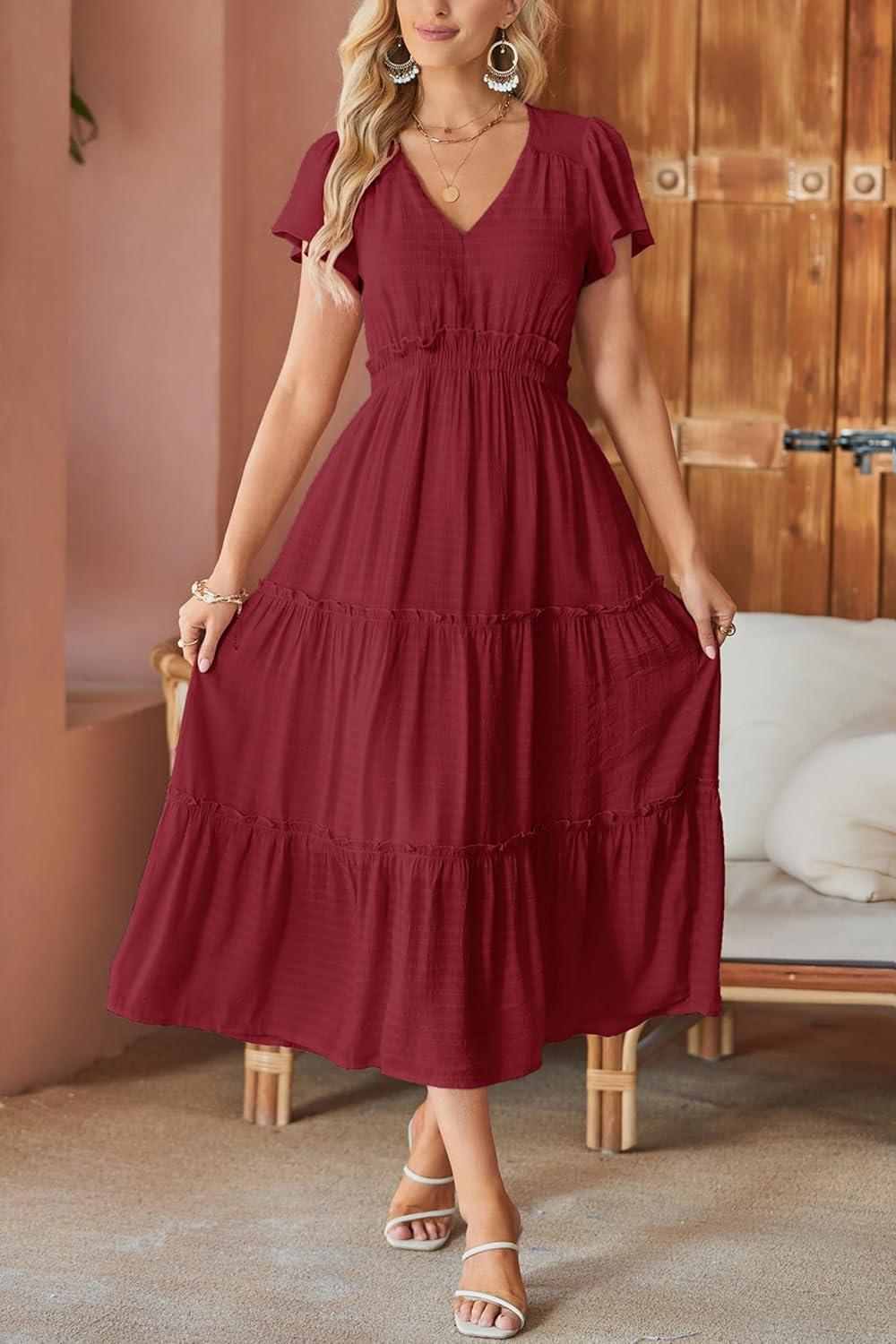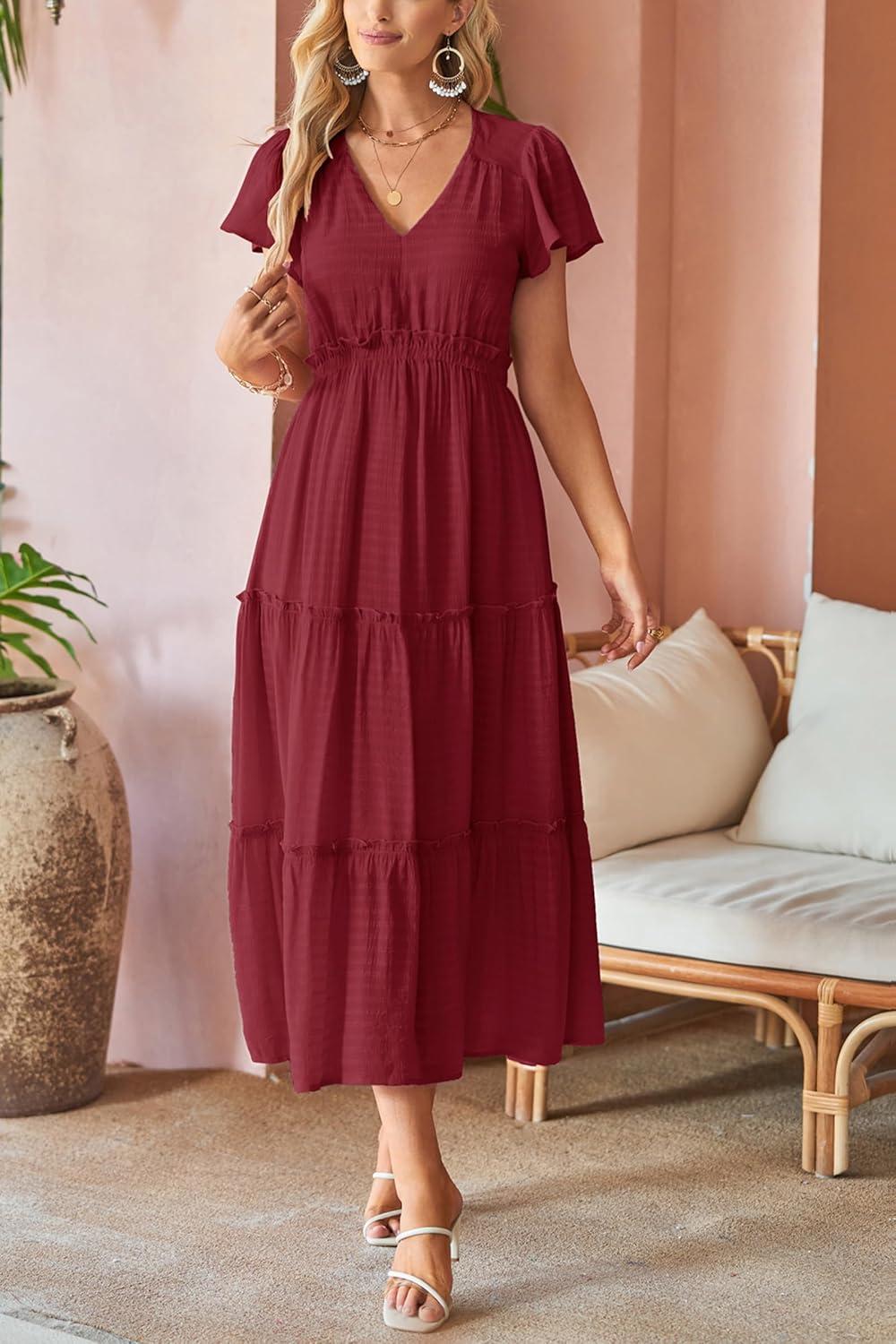 Be the first to review “VOTEPRETTY Women’s 2025 Summer Boho Maxi Dresses Flutter Short Sleeve V Neck Casual Beach Wedding Guest Vacation Long Dress(Wine)” Cancel reply