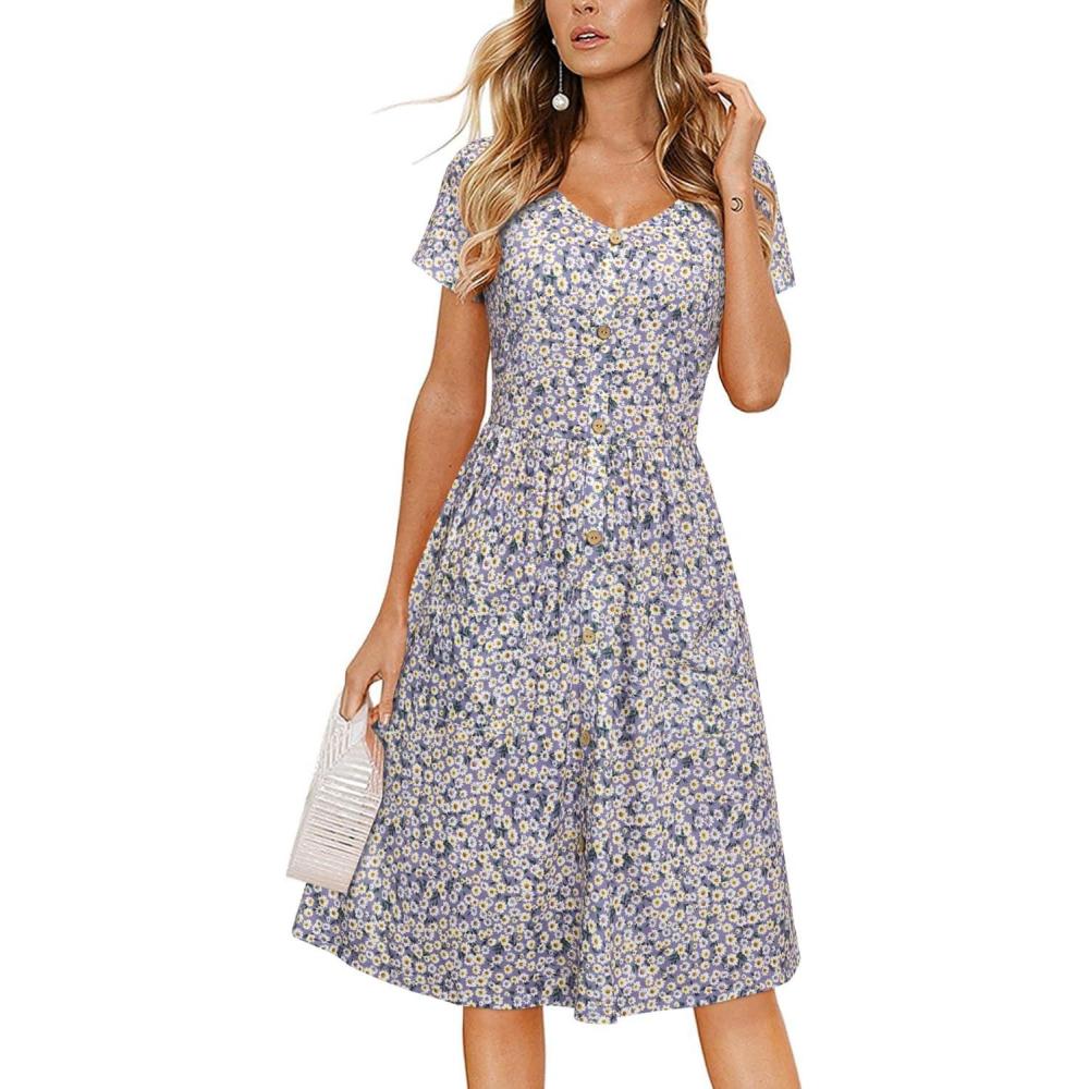 Get a free gift with your purchase of VOTEPRETTY Women’s Short Sleeve V Neck Sundress Summer Casual Button Floral Dress with Pockets(Floral43). Limited quantities available!