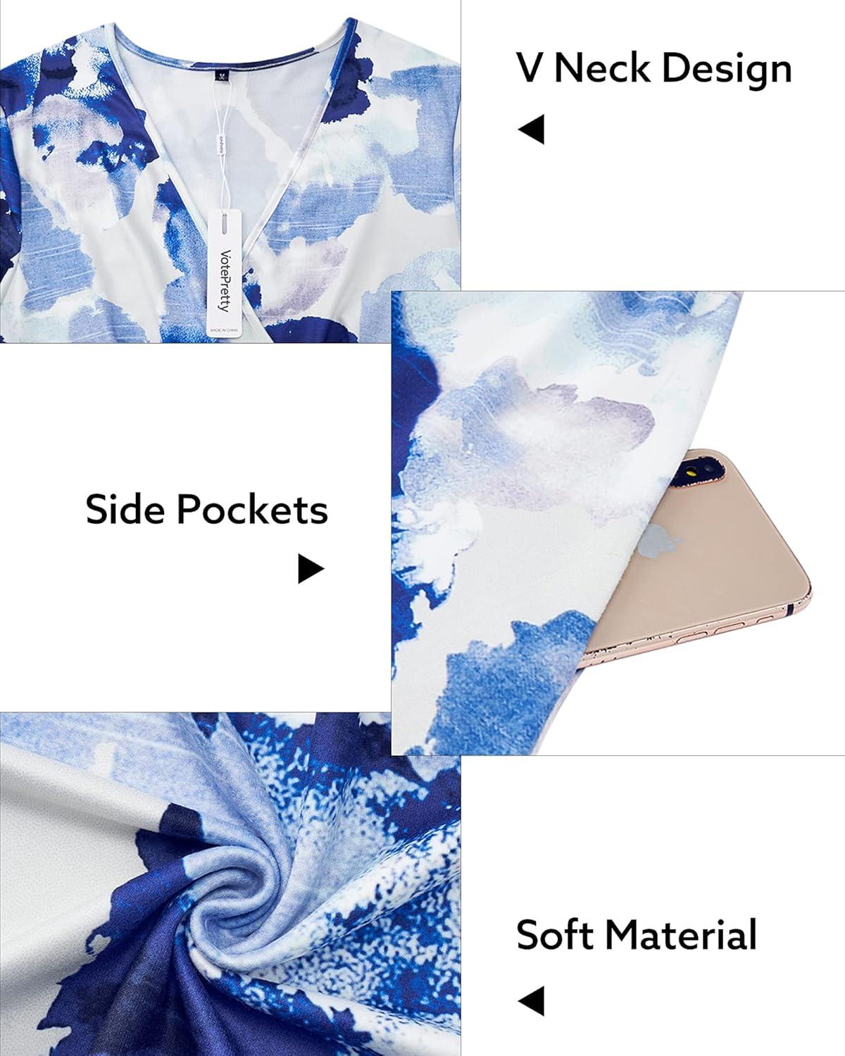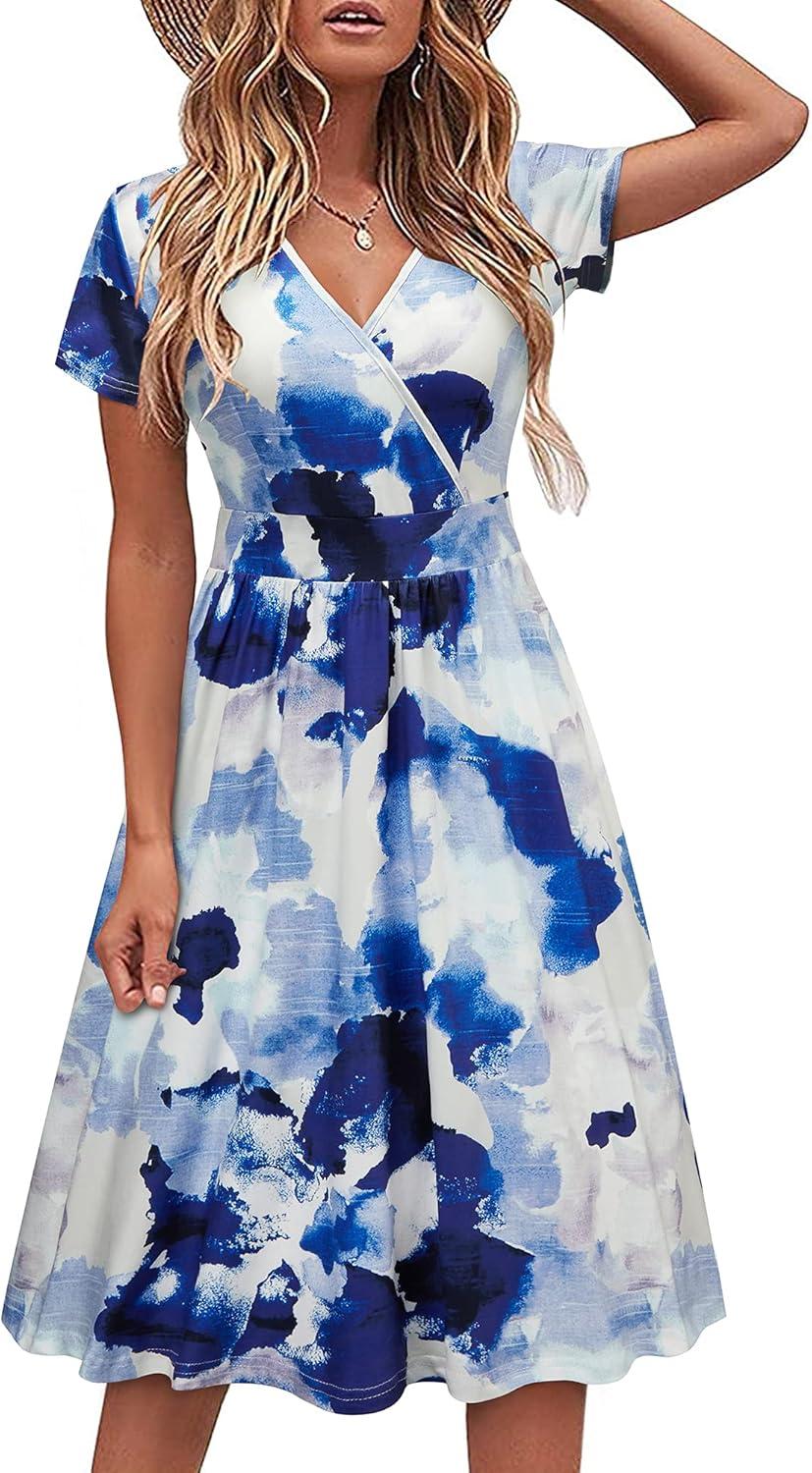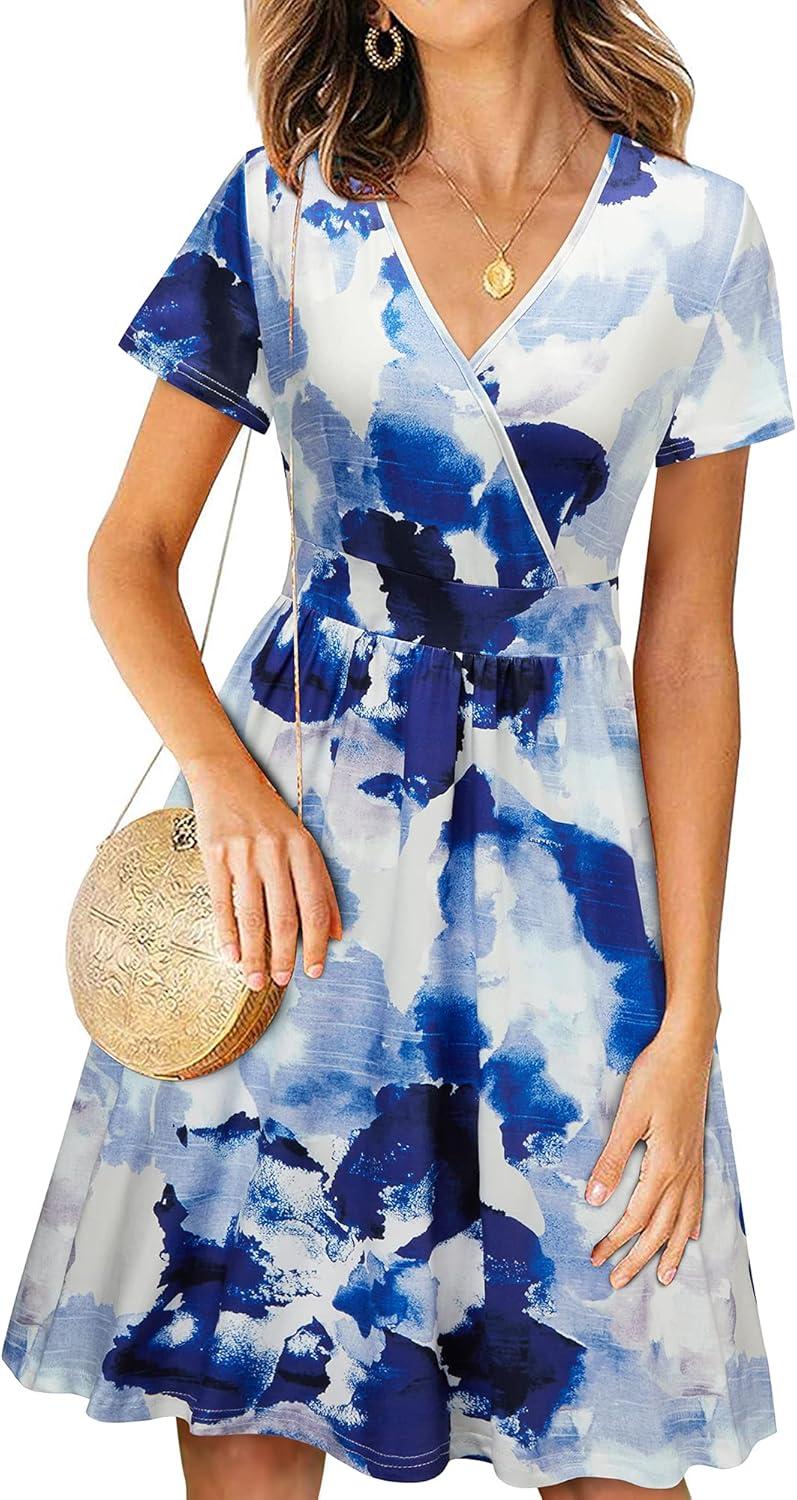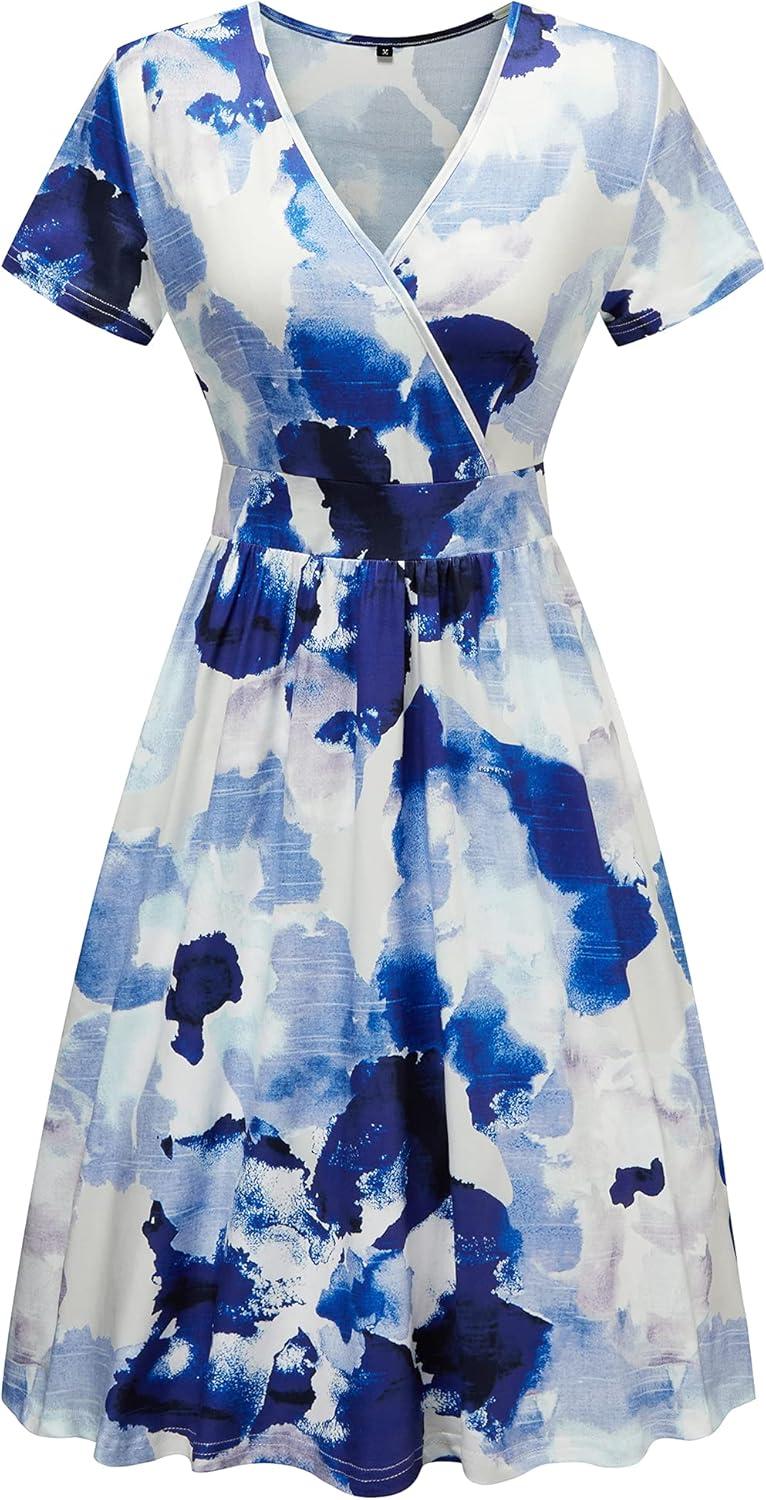 VOTEPRETTY Women’s Short Sleeve V Neck Wrap Dress Summer Casual Floral Sundress with Pockets(Floral03-short Sleeve)