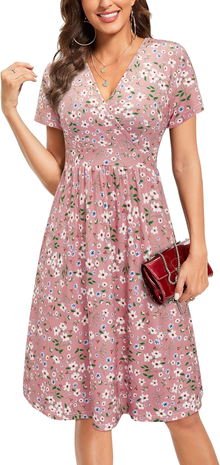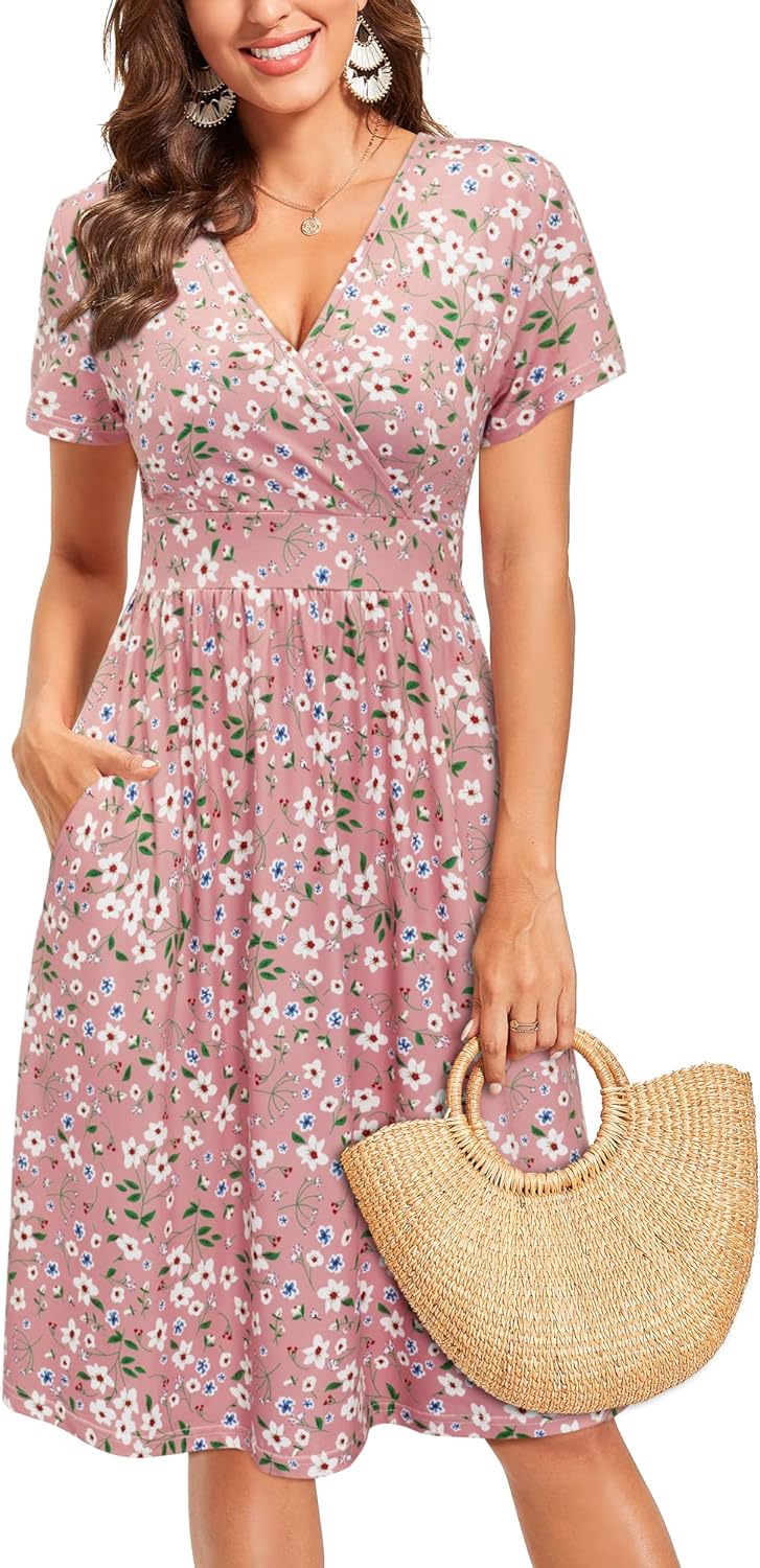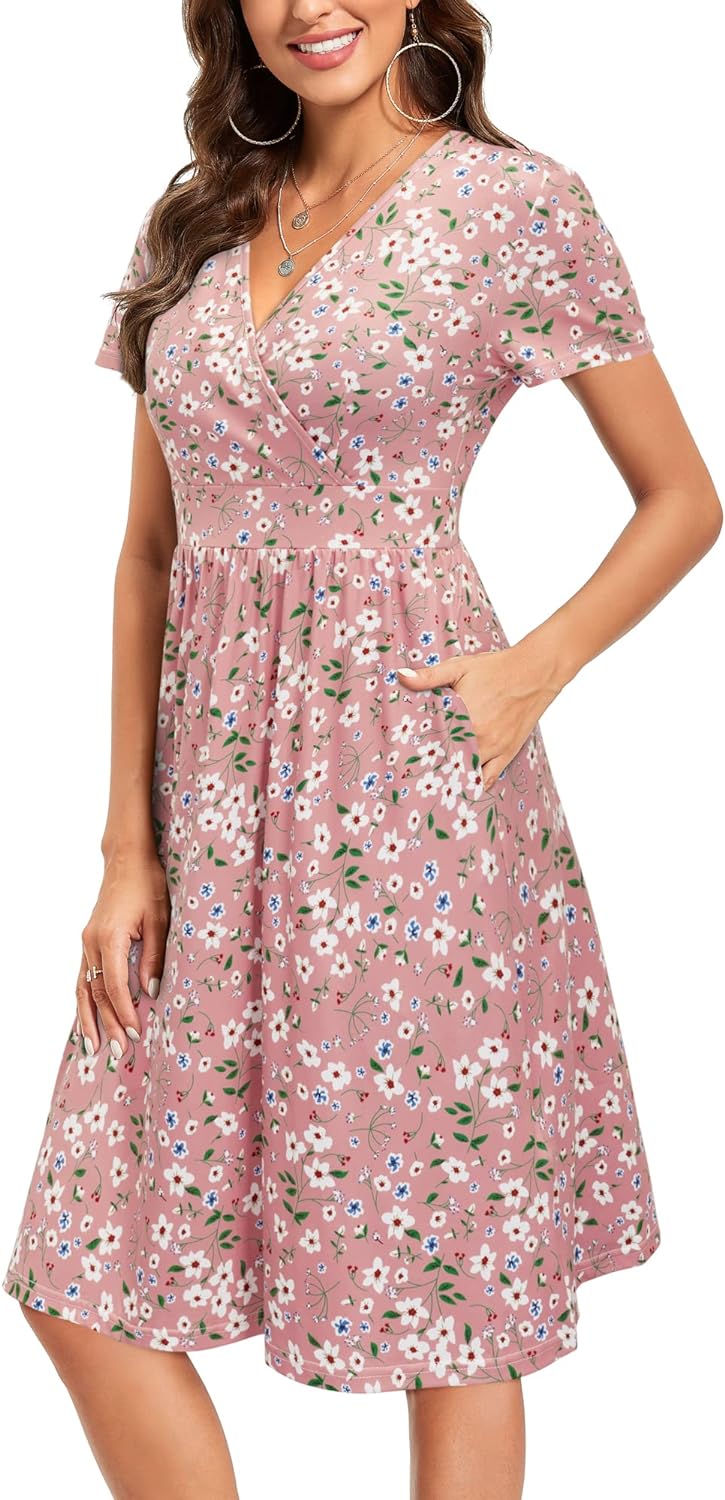 VOTEPRETTY Women’s Short Sleeve V Neck Wrap Dress Summer Casual Floral Sundress with Pockets(Floral27-short Sleeve)