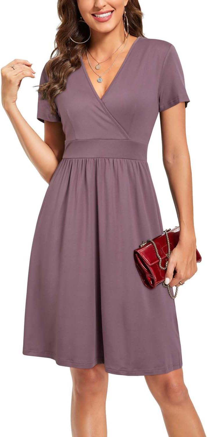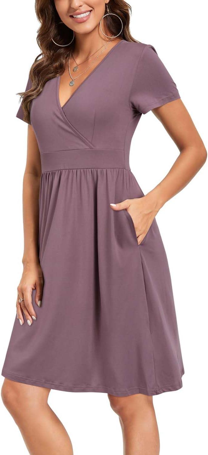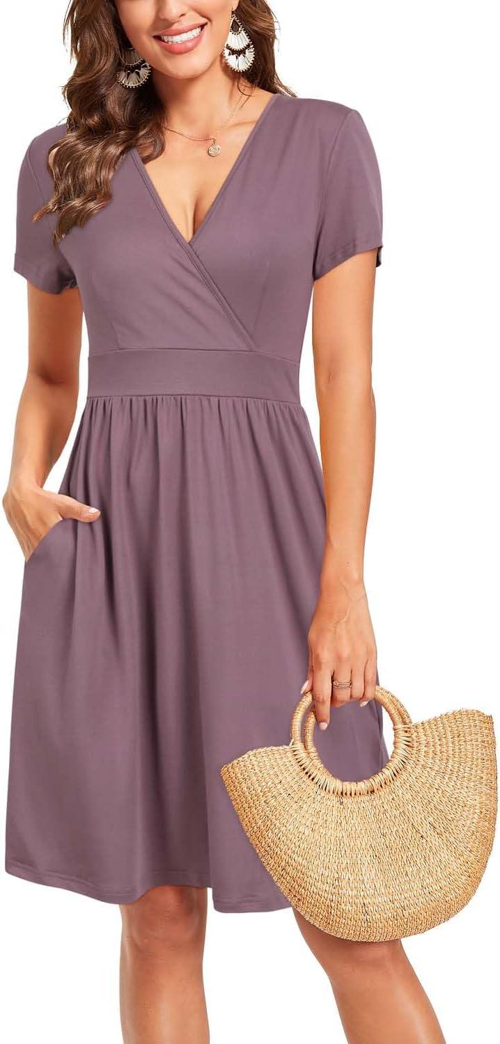 Discover the latest VOTEPRETTY Women’s Short Sleeve V Neck Wrap Dress Summer Casual Floral Sundress with Pockets(Purple) from and take advantage of our limited-time introductory offer.