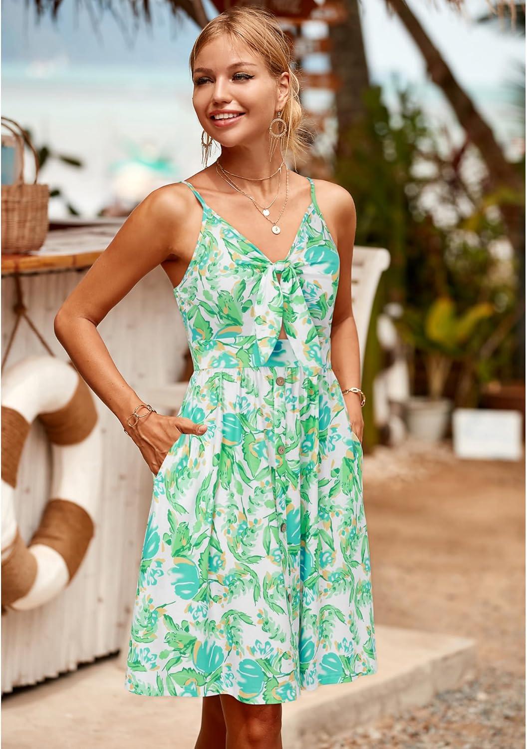 VOTEPRETTY Women’s Summer Dresses Spring Sundresses Beach Clothes Outfit Vacation 2024 V Neck Casual Tropical Resort Hawaiian(Green Floral)