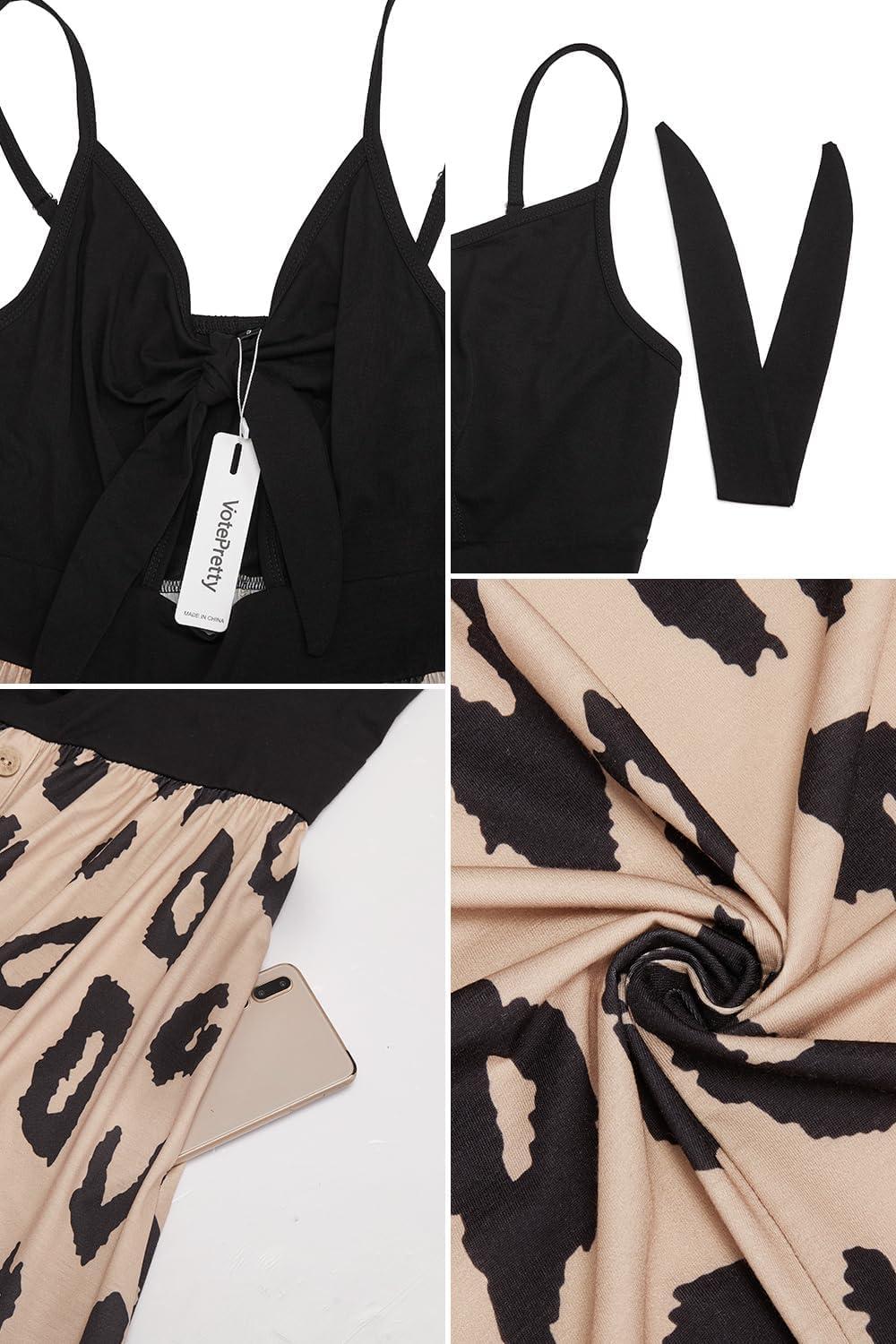 VOTEPRETTY Women’s Summer Dresses Spring Sundresses Beach Clothes Outfit Vacation 2024 V Neck Casual Tropical Resort Hawaiian(Leapard Floral)