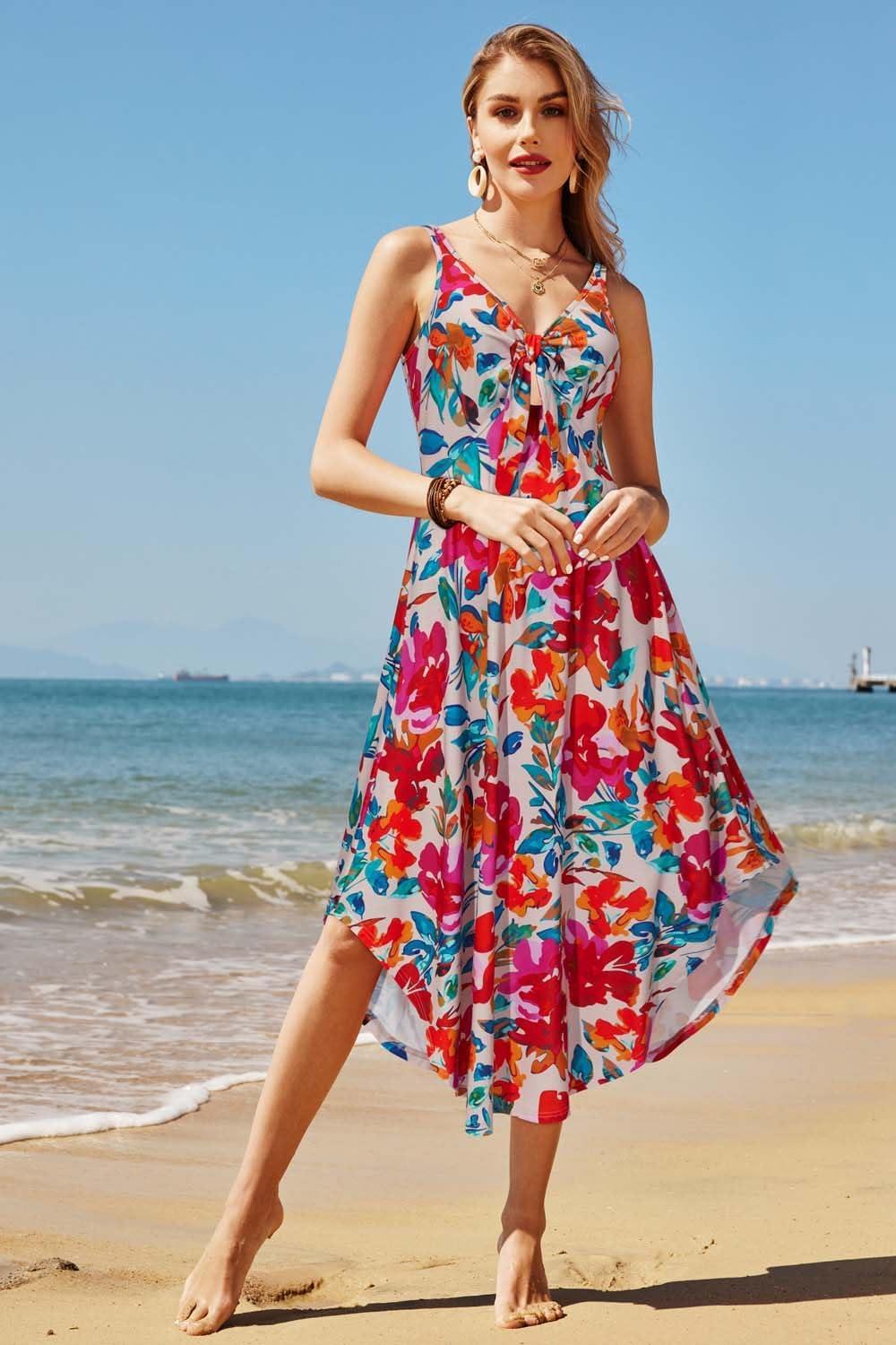 VOTEPRETTY Women’s Summer Maxi Dresses 2024 Spring Sundressess Beach Vacation Hawaiian Tropical Outfit Floral Clothes(Apricot Red Floral)