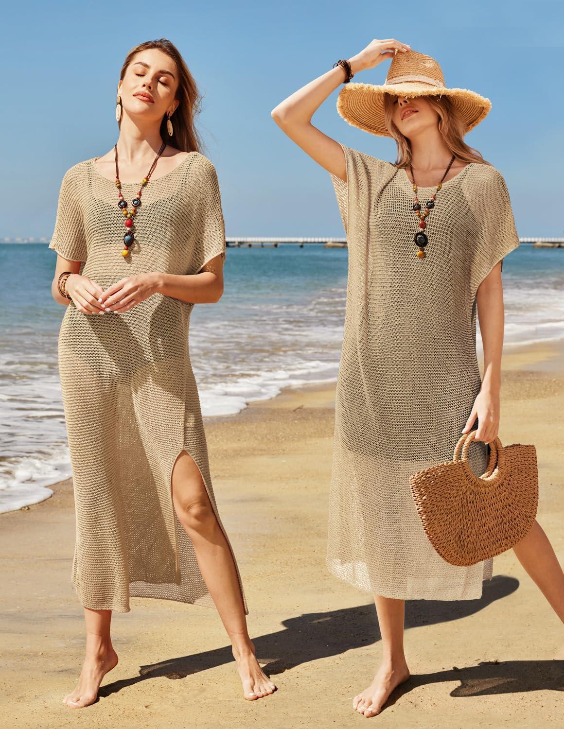 Our clearance section features the best deals on VOTEPRETTY Womens Two Piece Cover Ups Sets Crochet Beach Vacation Summer Swimwear Short Sleeve Outfits Split Knit Long Dress(Khaki) and accessories. Check it out now!