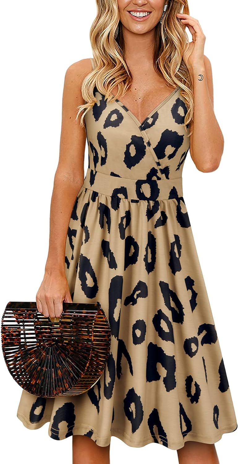 VOTEPRETTY Women's V-Neck Spaghetti Strap Dress Summer Casual Swing Sundress with Pockets