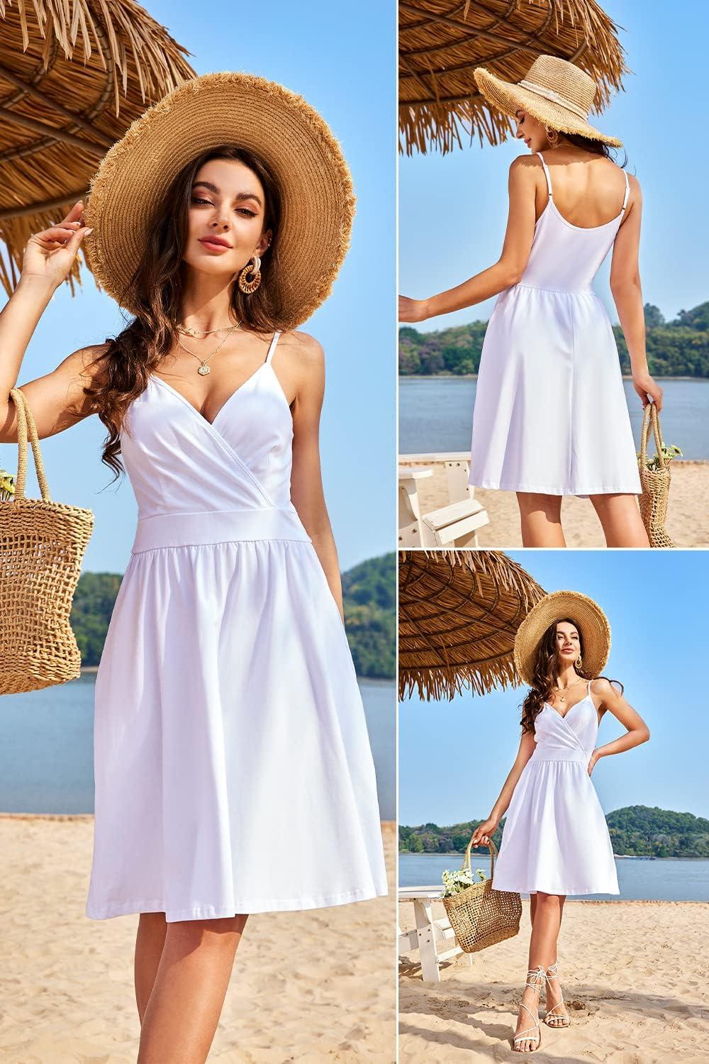 Get your hands on our newest VOTEPRETTY Women’s V Neck Floral Spaghetti Strap Sundress Casual Summer Party Swing Dress with Pocket(White) and enjoy a limited-time discount offer.