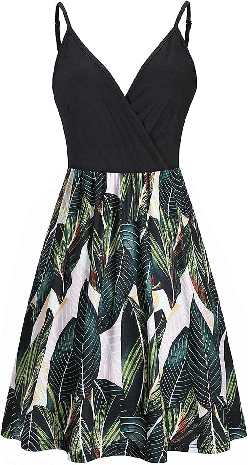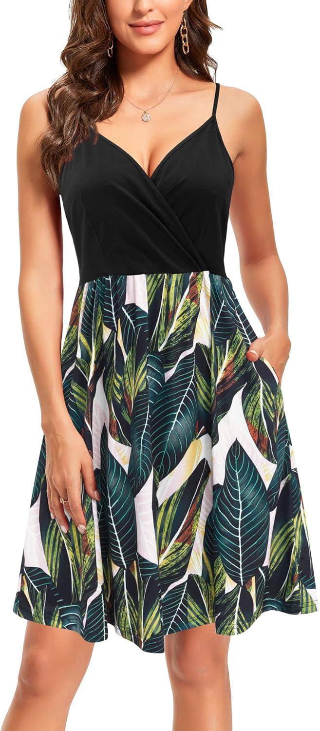 VOTEPRETTY Women’s V-Neck Spaghetti Strap Dress Summer Casual Swing Sundress with Pockets(Floral-g)