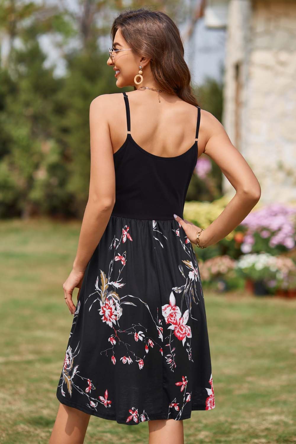 VOTEPRETTY Women’s V-Neck Spaghetti Strap Dress Summer Casual Swing Sundress with Pockets(Floral-k)