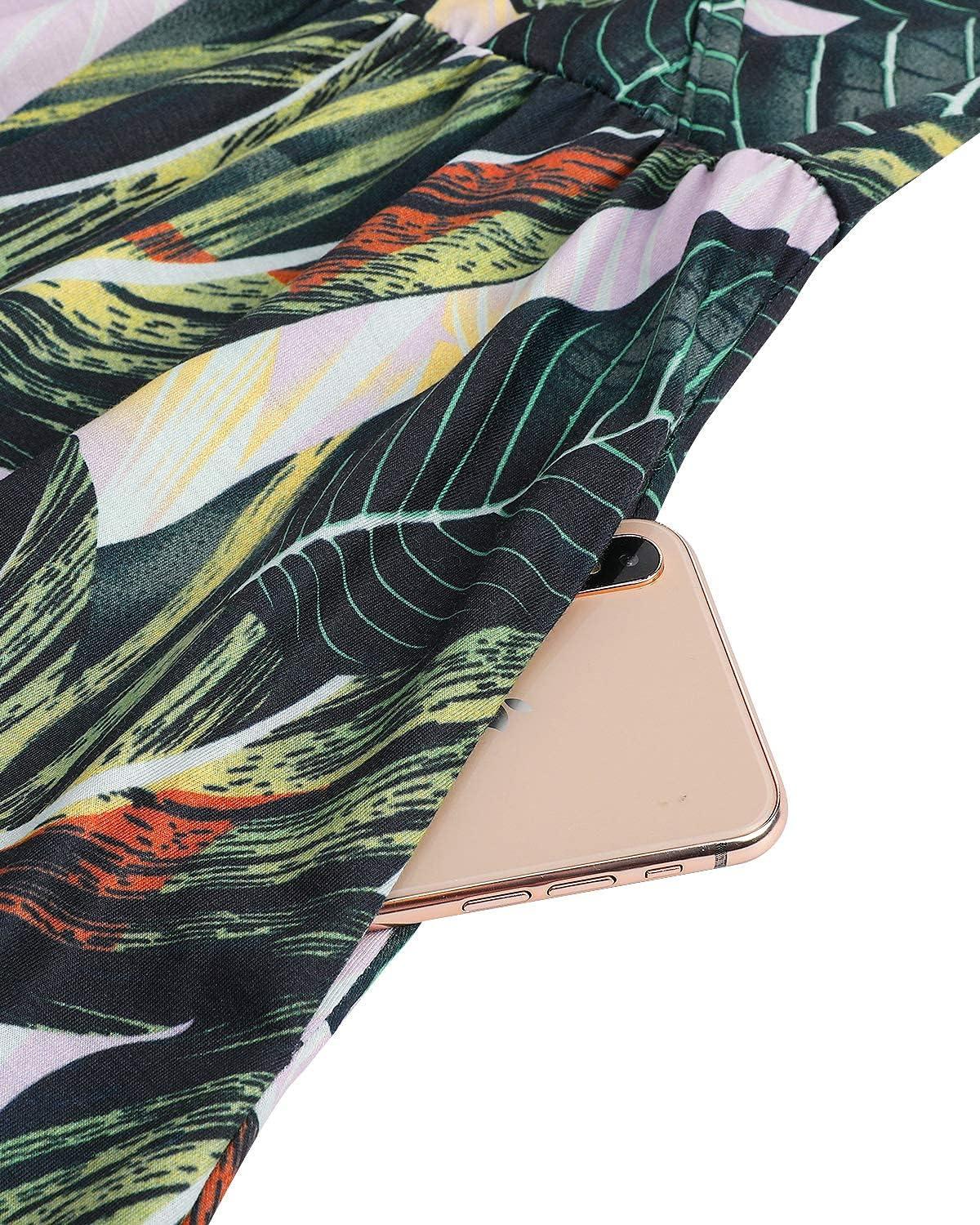 VOTEPRETTY Women’s V Neck Floral Spaghetti Strap Sundress Casual Summer Party Swing Dress with Pocket(Floral28)