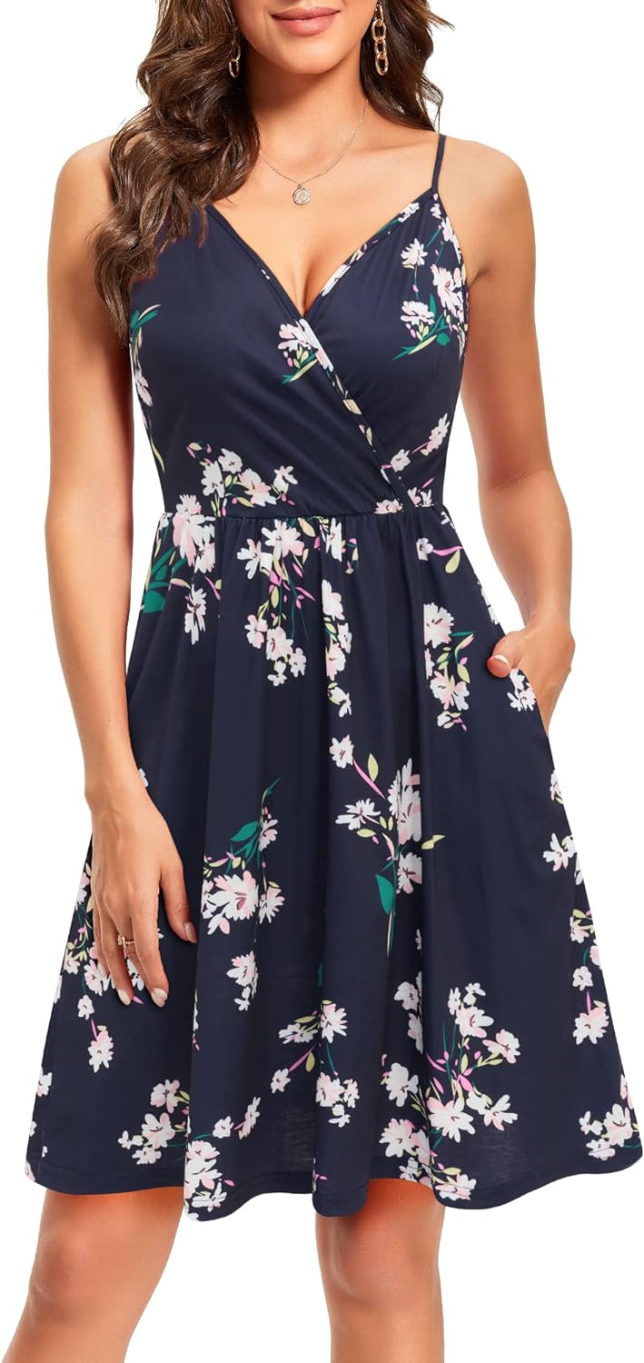 Get your hands on our exclusive VOTEPRETTY Women’s V-Neck Spaghetti Strap Dress Summer Casual Swing Sundress with Pockets(Floral23) collection, now at a discounted price.