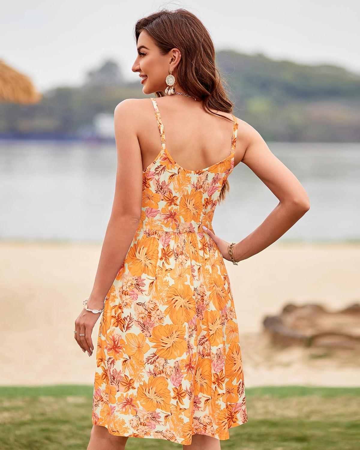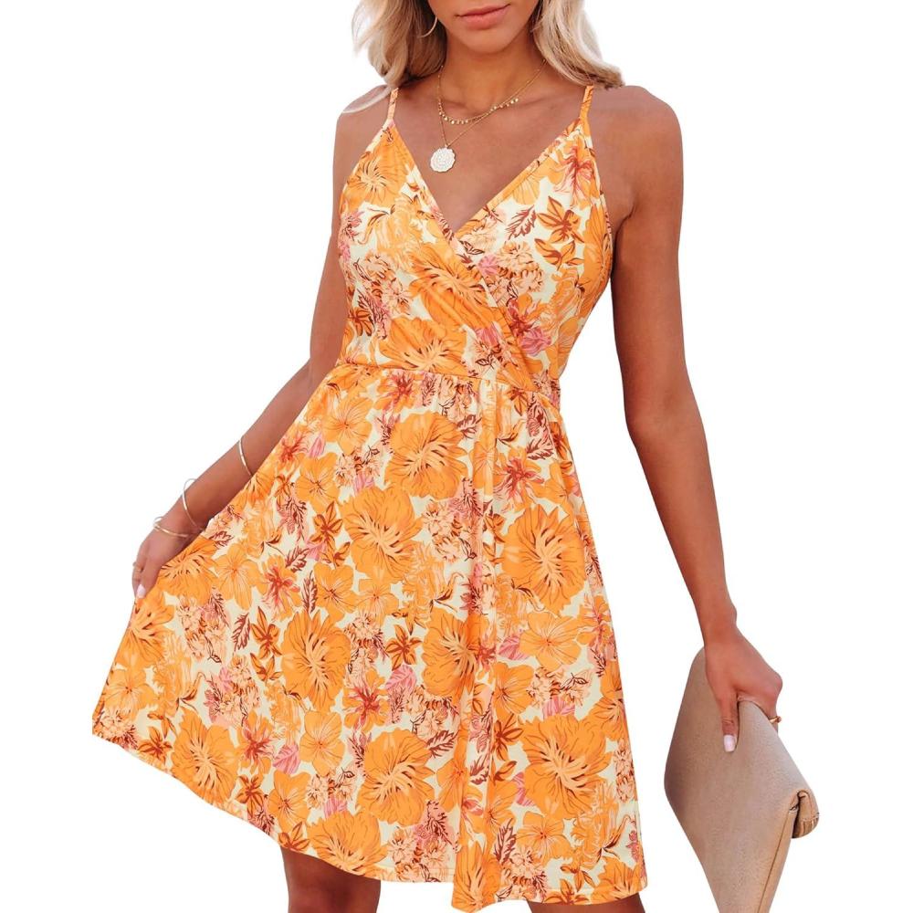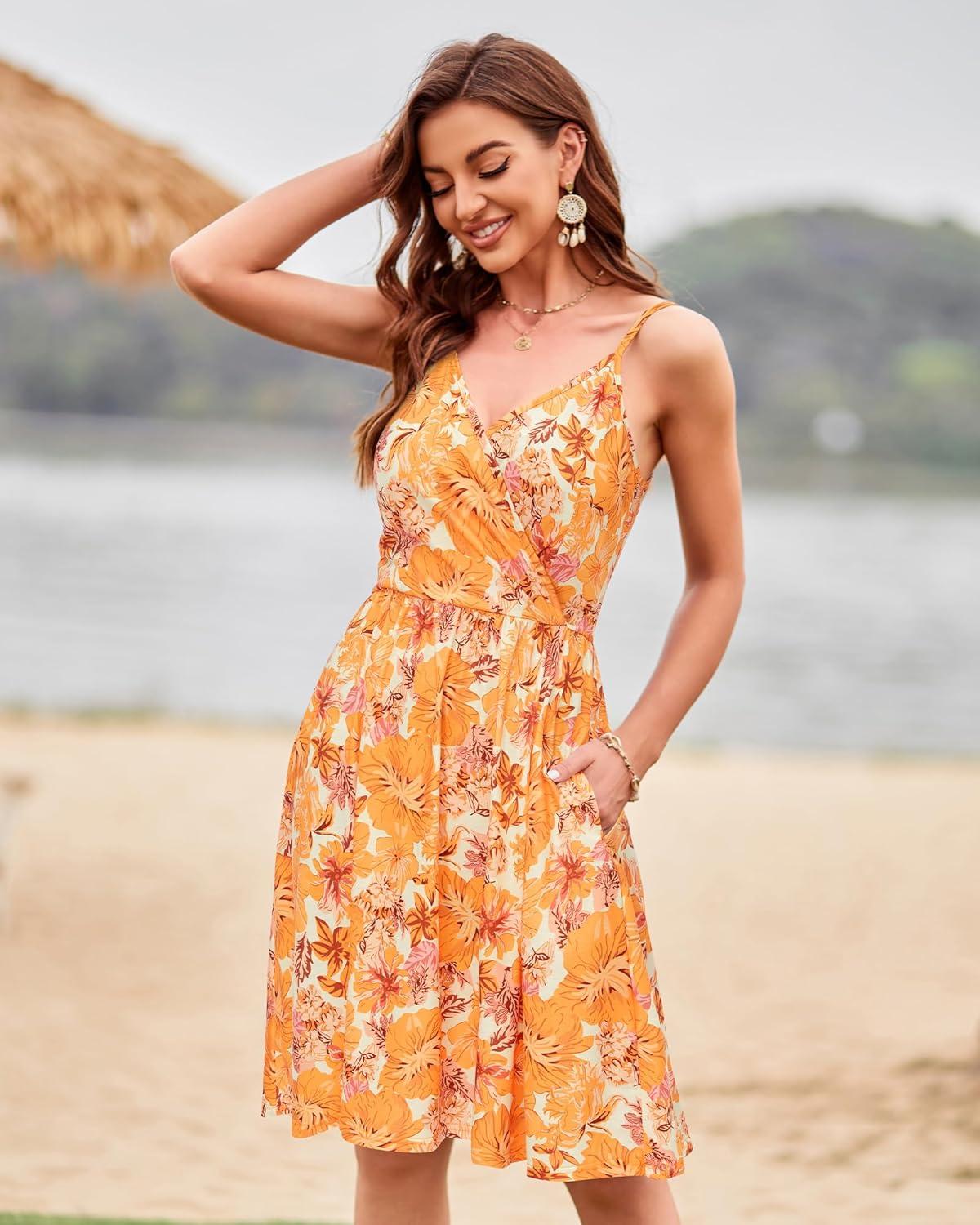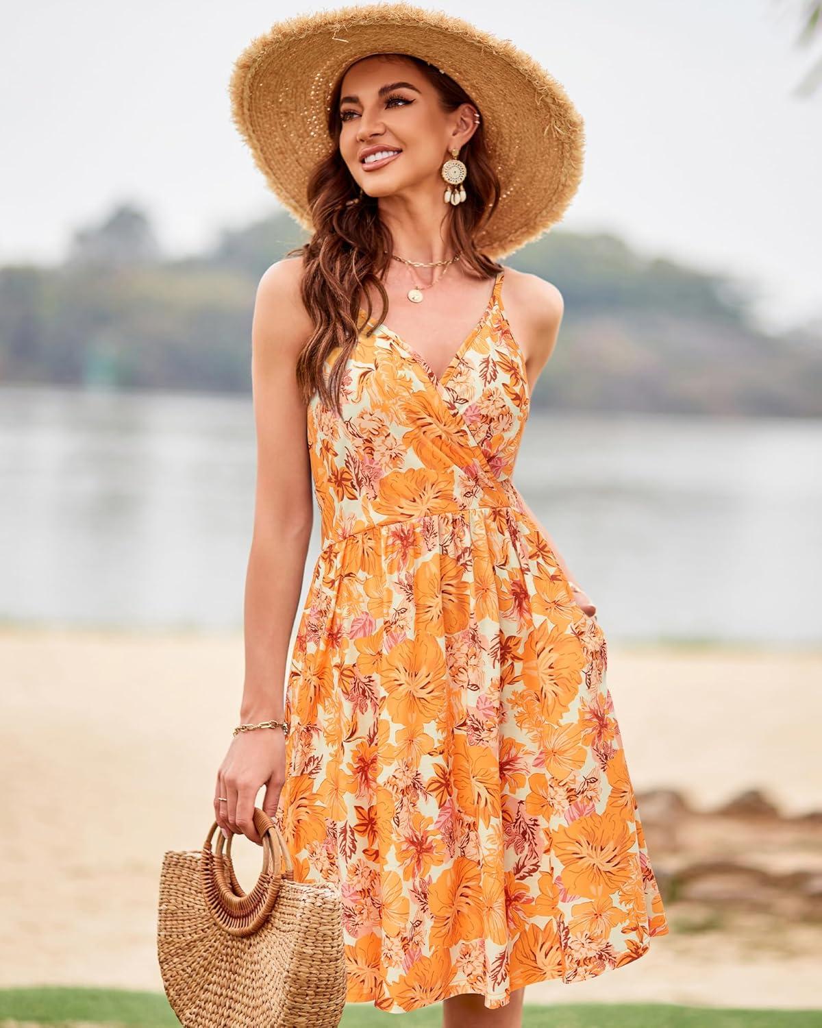Get up to 70% off on VOTEPRETTY Women’s V-Neck Spaghetti Strap Dress Summer Casual Swing Sundress with Pockets(Orange Floral) styles during our end-of-season clearance event.