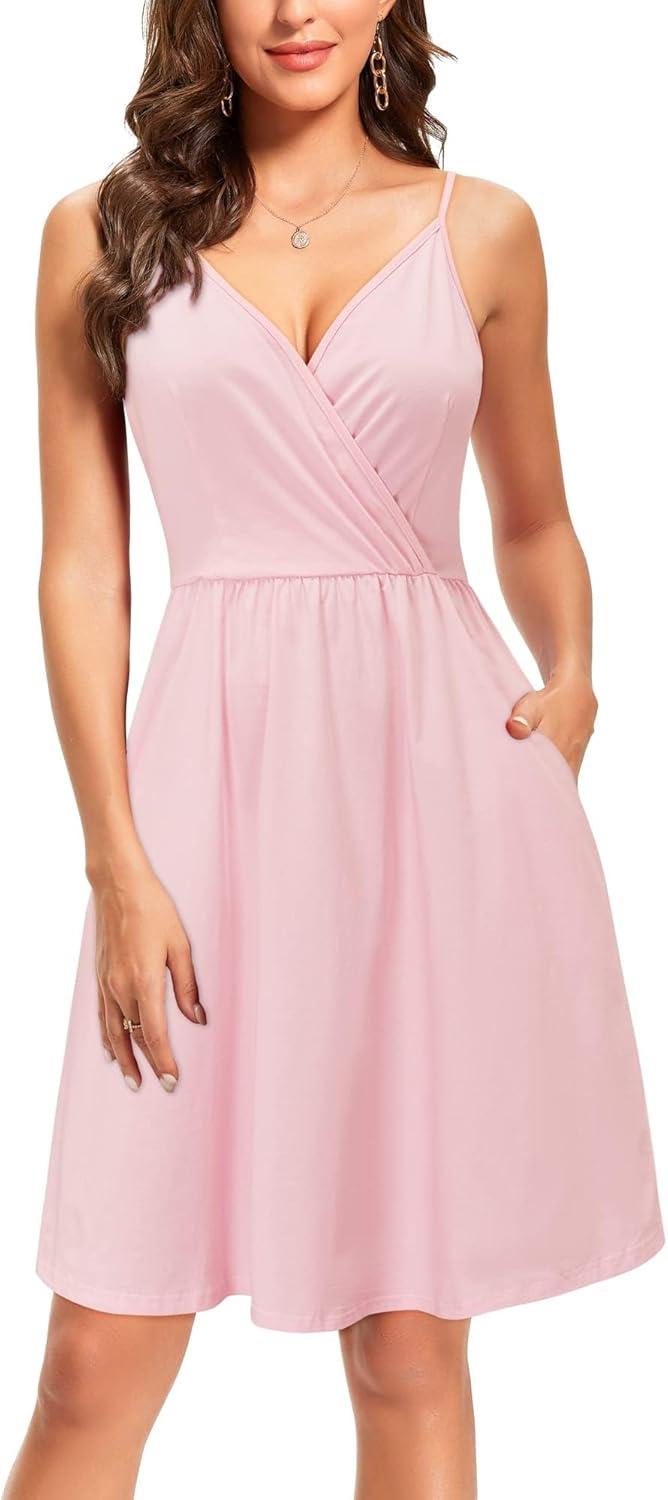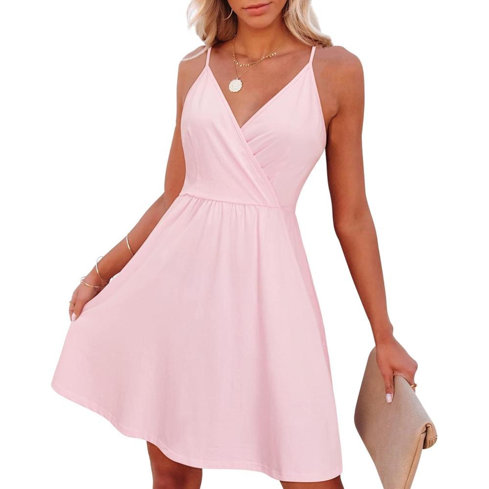 Get the VOTEPRETTY Women’s V-Neck Spaghetti Strap Dress Summer Casual Swing Sundress with Pockets(Pink) you’ve been eyeing at a discounted price during our seasonal sale event.