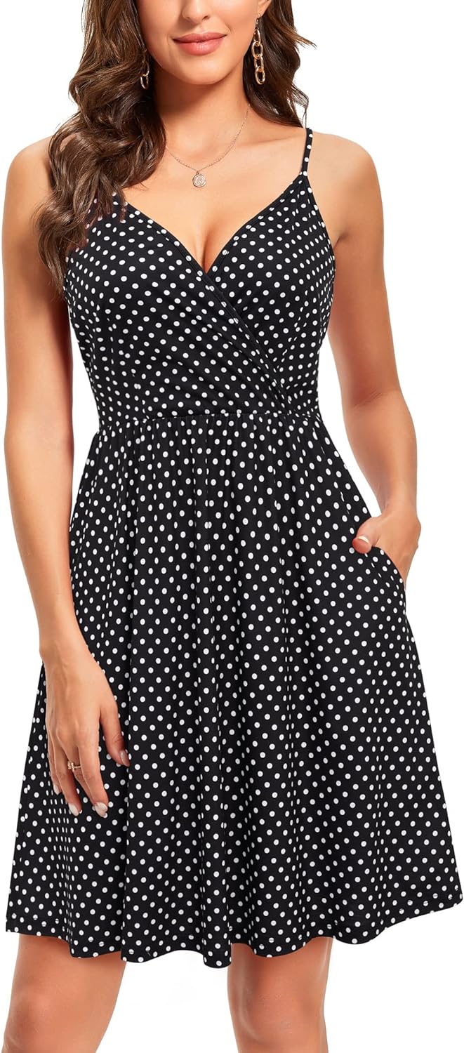 Score big savings on VOTEPRETTY Women’s V-Neck Spaghetti Strap Dress Summer Casual Swing Sundress with Pockets(Polka Dot) during our back-to-school sale. Limited quantities available.